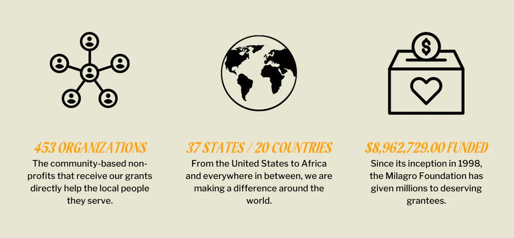 Milagro ("Milagro") es una fundación benéfica que apoya a niños y jóvenes subrepresentados y vulnerables en las áreas de artes, educación y salud. La Milagro Foundation fue iniciada en 1998 por Carlos Santana y su familia para beneficiar a los niños de todo el mundo. Los Santana se dieron cuenta de que necesitaban una fundación, un pequeño equipo y un Consejo de Administración para gestionar el número de solicitudes personales de ayuda que recibían a diario. La fundación otorga subvenciones a organizaciones que trabajan con niños y jóvenes, especialmente aquellos en riesgo y desfavorecidos debido a factores como la mala salud, el analfabetismo o la falta de oportunidades educativas y culturales.